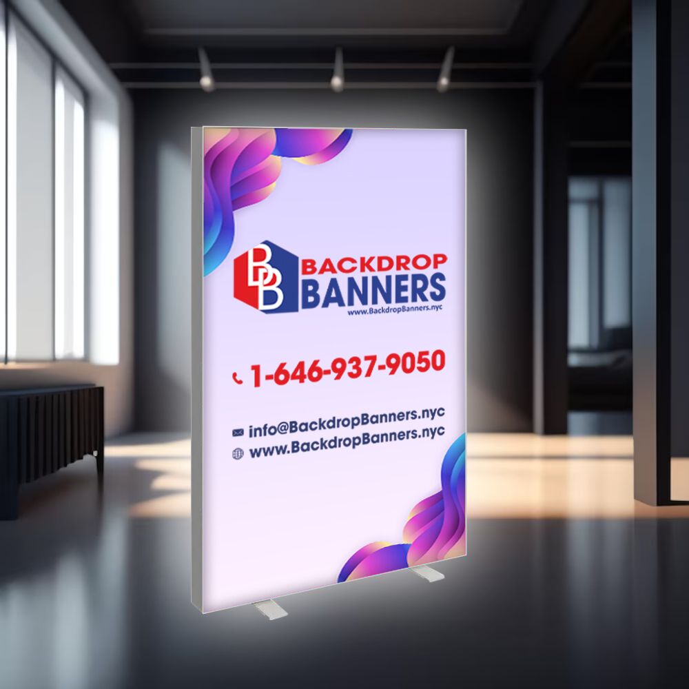 Elevate your brand to new heights with the 4 ft x 6 ft Vector Frame Backlit Display from BackdropBanners.nyc. Make a bold statement, capture attention, and stand out in the crowd with this remarkable backlit display. Order yours today and experience the brilliance of backlit advertising like never before. Let your brand shine with BackdropBanners.nyc!