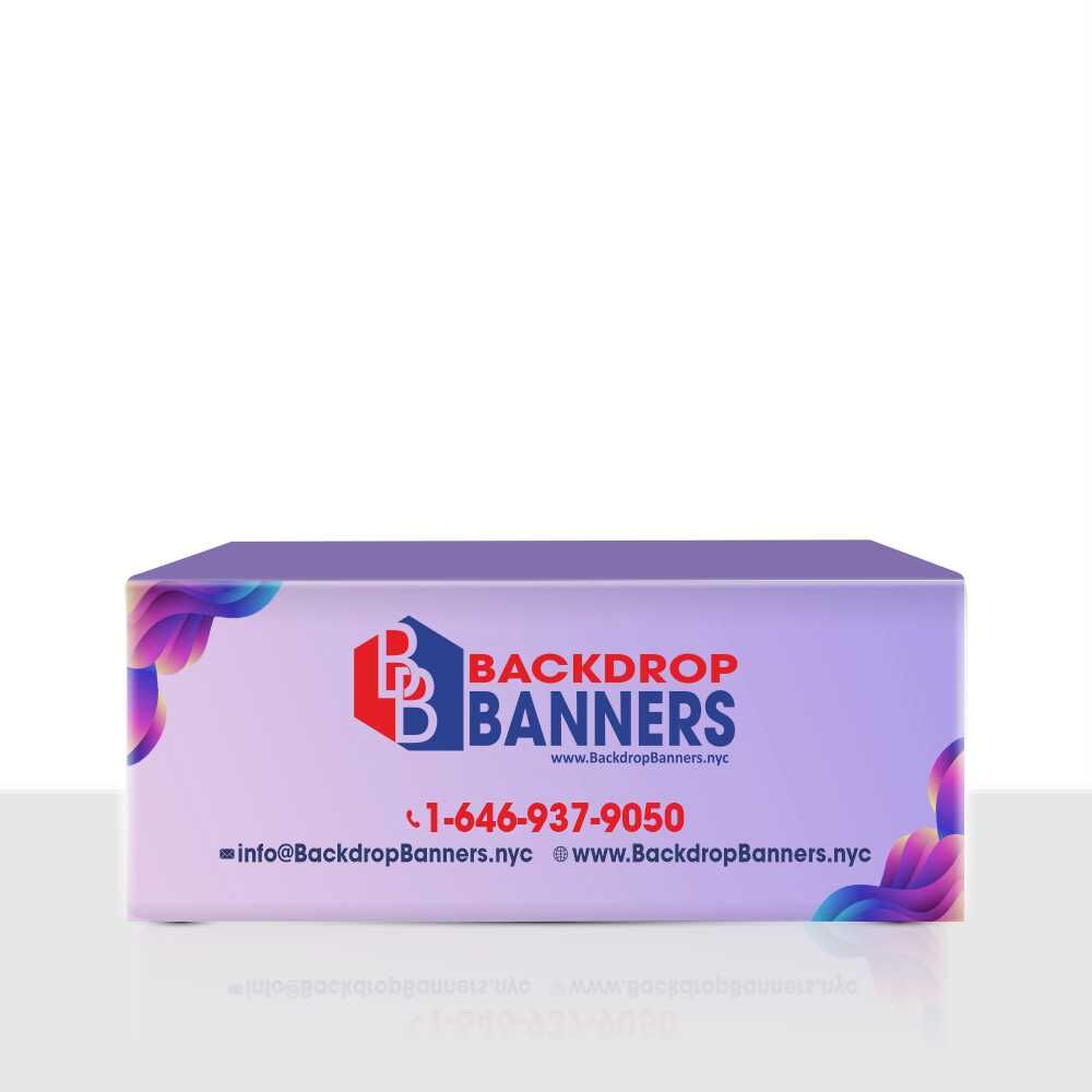 Additionally, advanced printing techniques are used to apply your custom graphics or logo onto the fabric. Whether you opt for a single-color design or a full-color print, the result is a vibrant and eye-catching tablecloth that effectively showcases your brand.